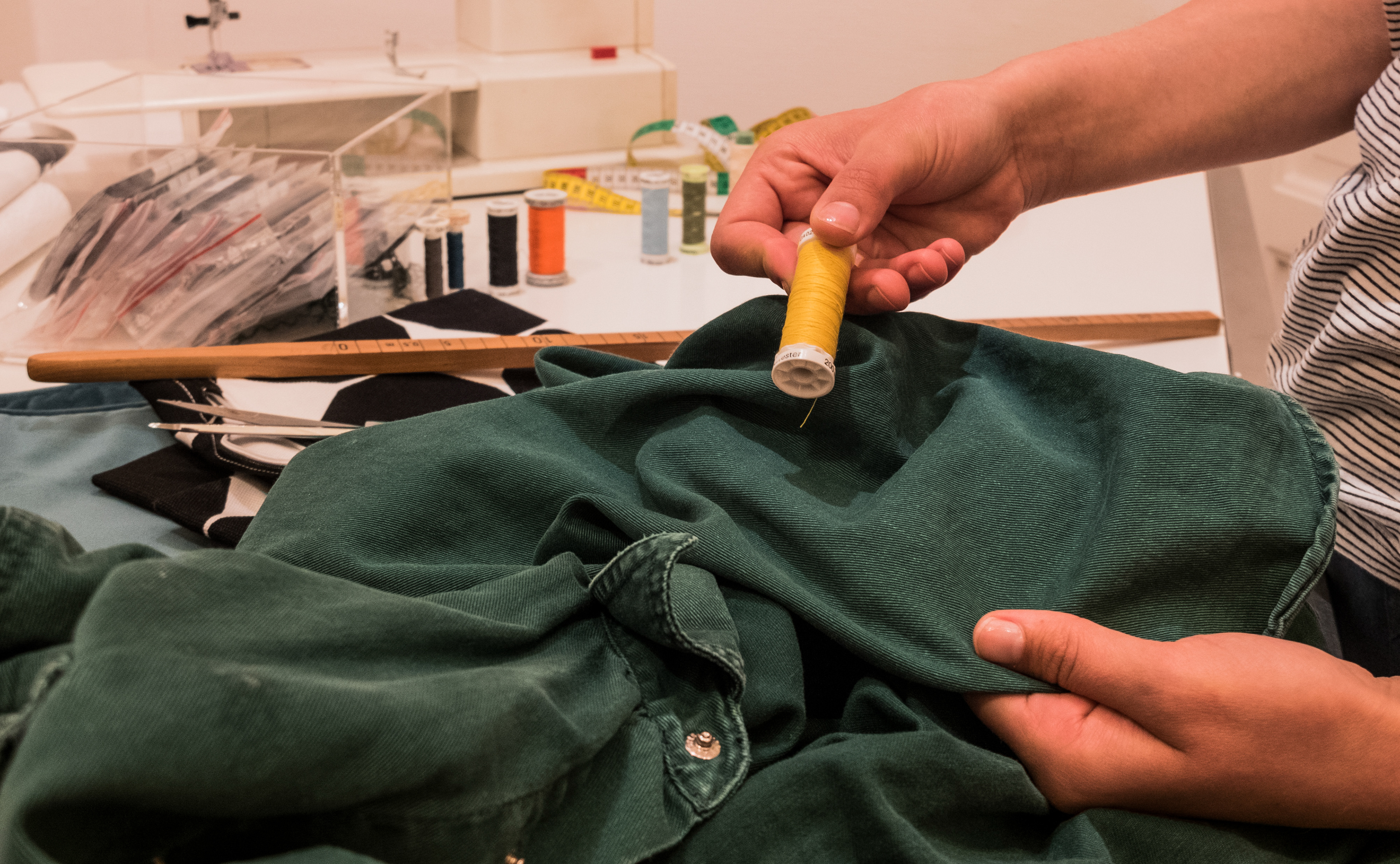 I samarbeid med R&D fra Adidas, utviklet vi en tjeneste der man kan reparere og videreselge klær og sko fra Adidas. I tråd med deres målsetning om å drive en sirkulær økonomi. For å igangsette denne tjenesten vil man lansere reparerbare sko, som man kan fikse i konseptbutikken når behovet melder seg. Når man fikser sko eller klær får man sydd inn striper på Adidaslogoen som skal signalisere at du har fikset klærne fremfor å kjøpe nytt. Dette vil signalisere at brukeren har tatt et miljøvennlig standpunkt i tillegg for å skape tilhørighet blant likesinnede.